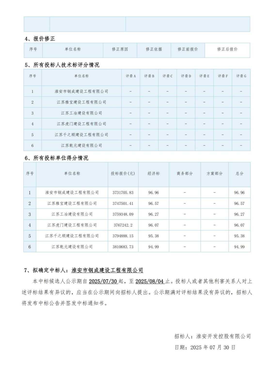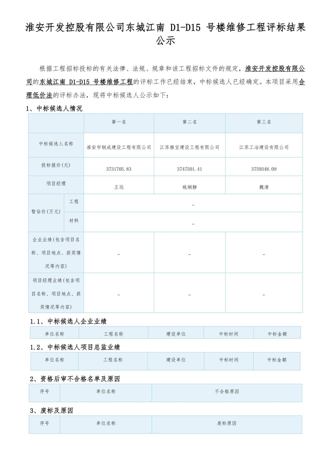 淮安開發(fā)控股有限公司東城江南 D1-D15 號(hào)樓維修工程評(píng)標(biāo)結(jié)果公示